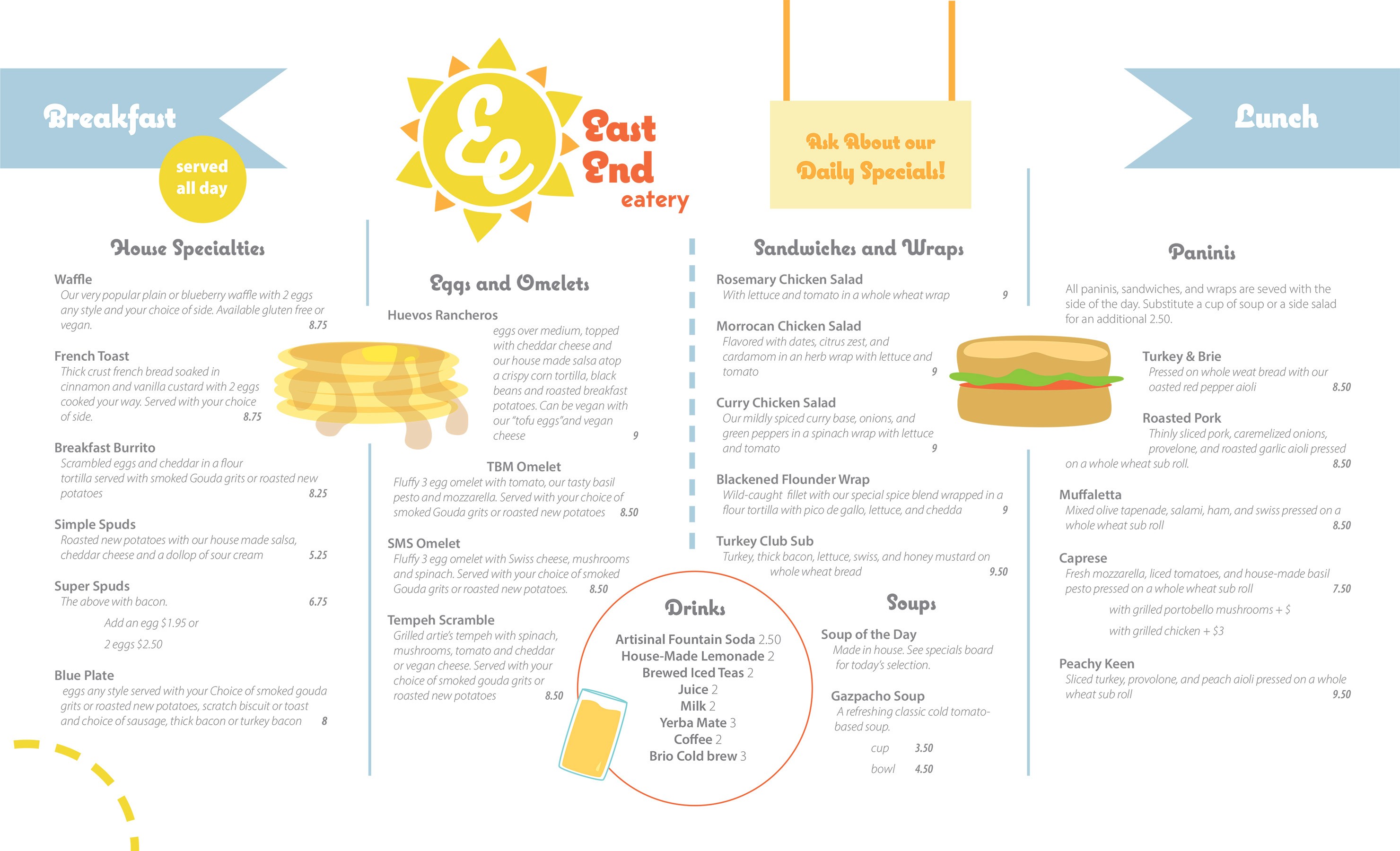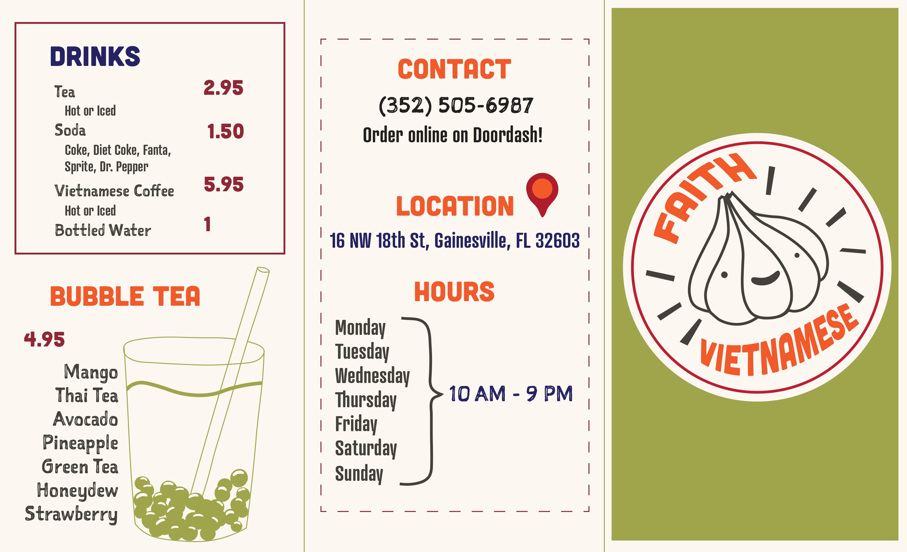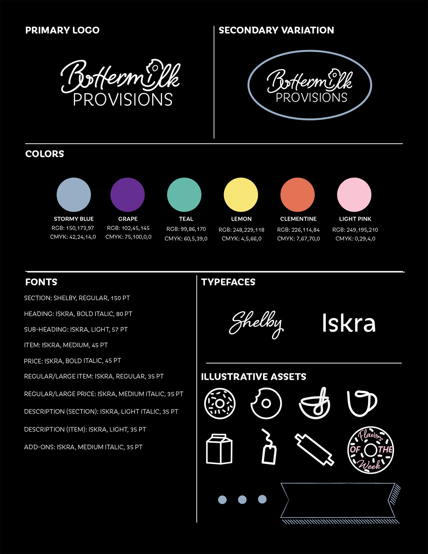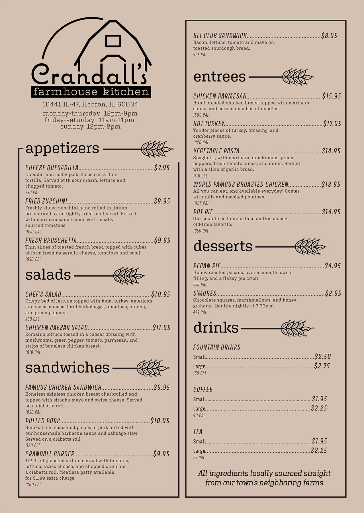 Prompt: find a local restaurant and redesign its identity and menu. The restaurant’s identity includes the redesign of the logo and visual elements of the brand. The project focuses on typography, hierarchy & layout of the menu. The students must be intentional about these aspects as to how they enhance the overall customer experience. Students also design additional items for the restaurant to showcase the new identity.