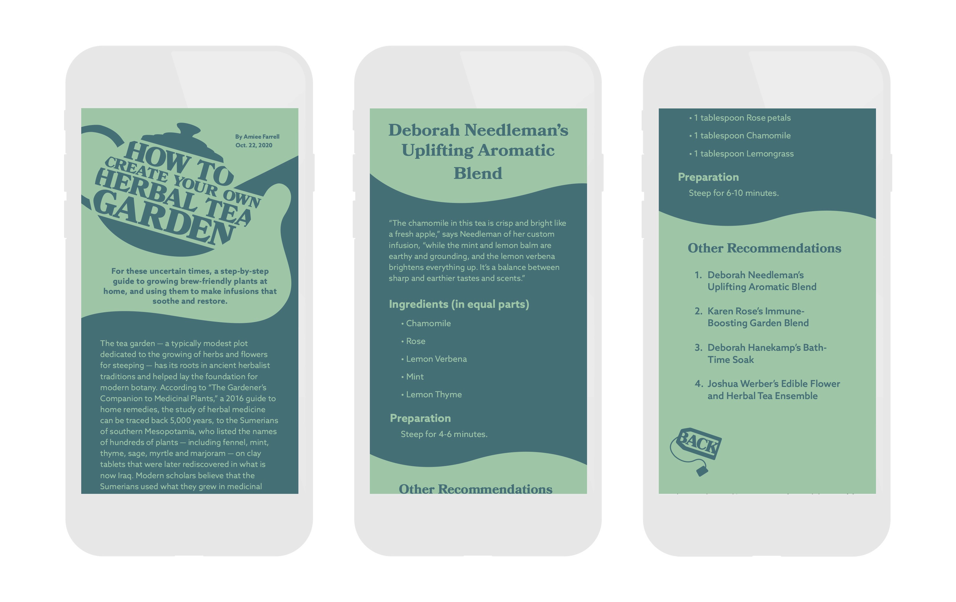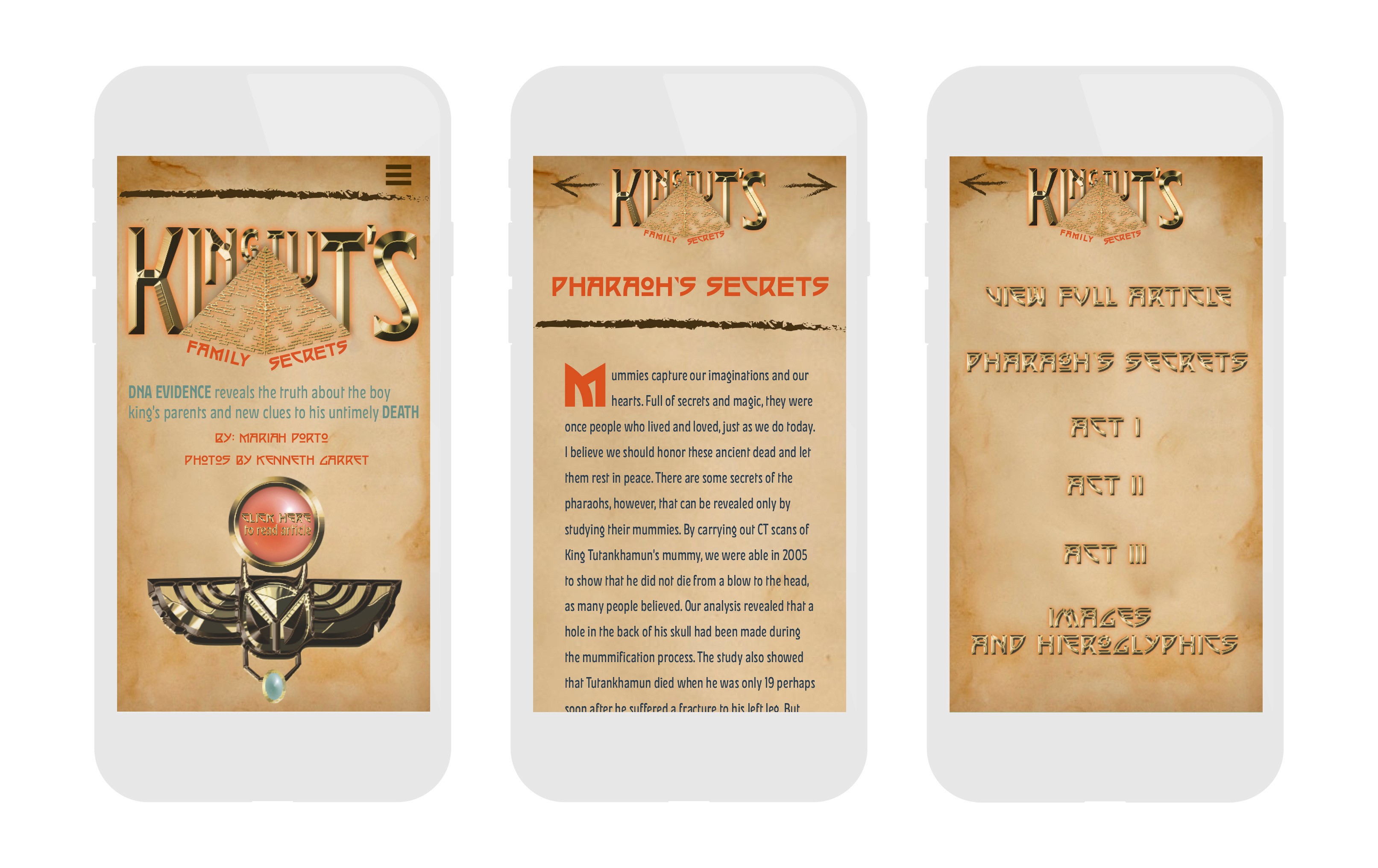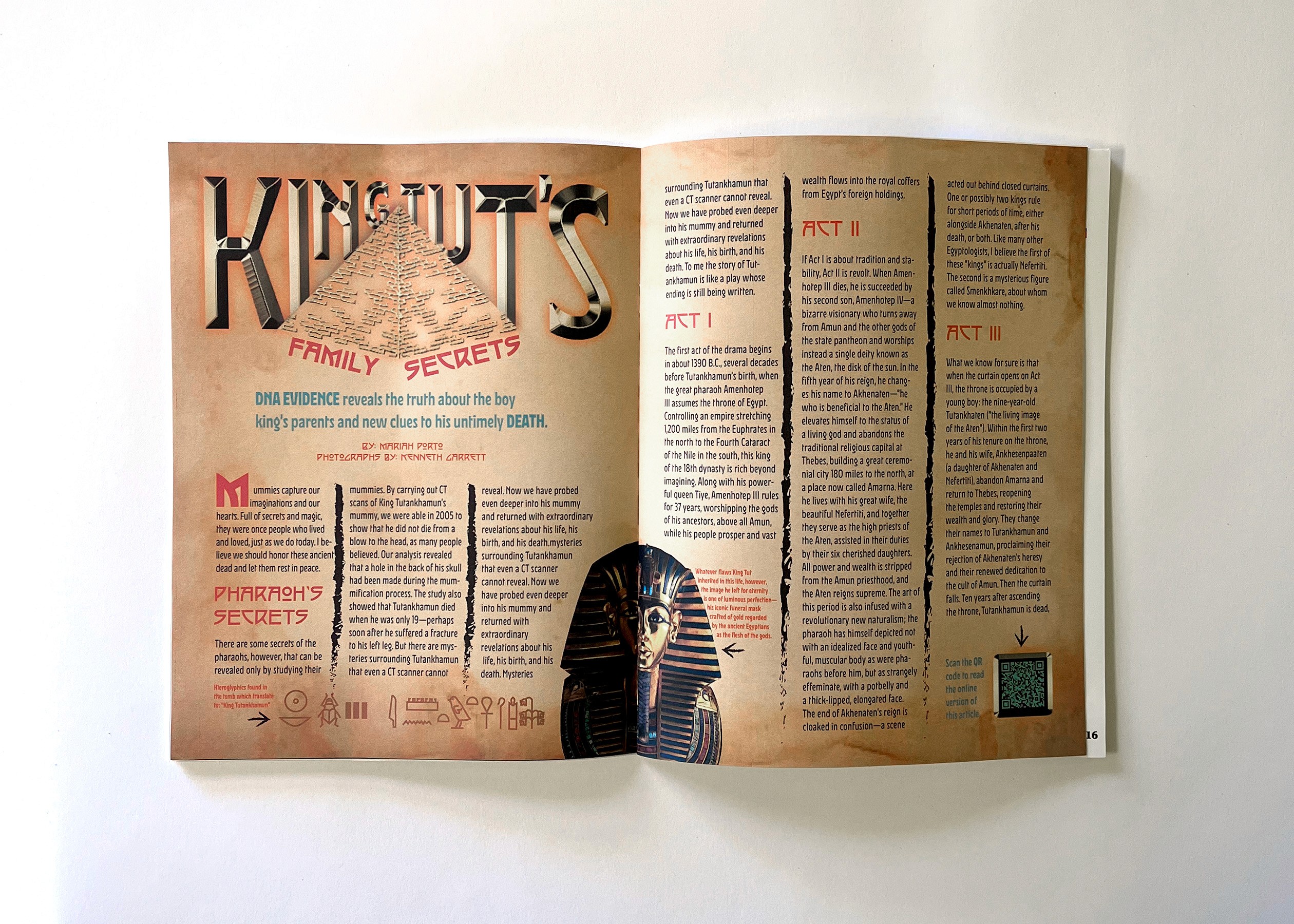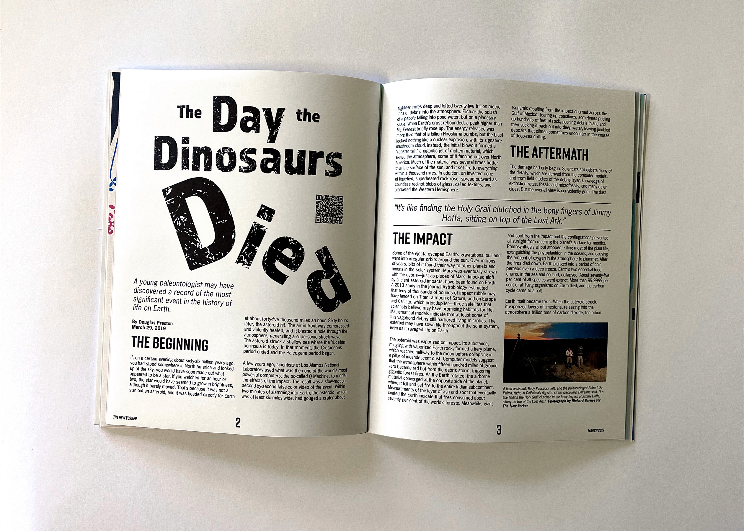 Prompt: students choose an article of their interest and redesign its layout as a magazine spread, creating a typographic artwork for the title. In addition to the spread, students learn to adapt their print designs to an online format by prototyping mobile web pages of the article in Adobe XD. The webpage and the spread must be consistent to represent the same article. The design relies on typography, hierarchy, and layout, with intentional typographic elements to convey clear clues about the articles' structure and enhance the overall reading experience on both platforms.